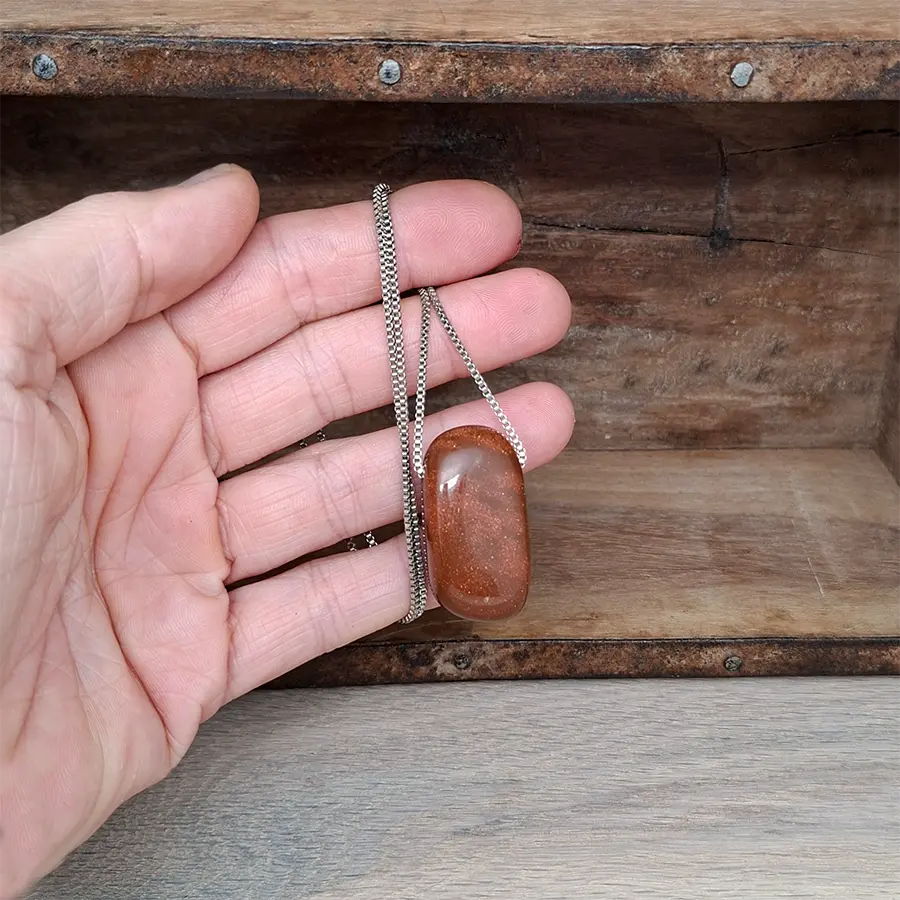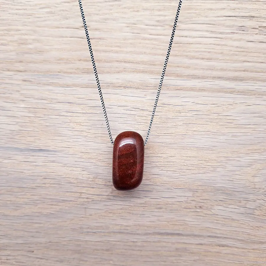 Der Goldfluss ist kein natürlicher Edelstein, sondern ein traditionell hergestellter Glasstein, der bereits seit dem 17. Jahrhundert in liebevoller Handwerkskunst gefertigt wird. Winzige Kupferpartikel im Glas sorgen für den charakteristischen funkelnden Effekt, der an einen klaren Sternenhimmel erinnert. Dadurch erhält er seine besondere Tiefe und seinen warmen, beinahe magischen Glanz.